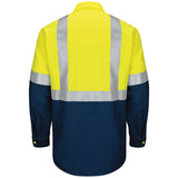 Red Kap® Ripstop Class 2 Colorblock Long Sleeve Work Shirt (Safety Green/Navy)