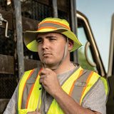• 1 inch wide silver reflective material with 2 inch contrasting color stripes 360 degrees around the hat