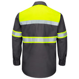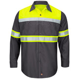 Red Kap® Enhanced Viz Ripstop Colorblock Long Sleeve Button-Down Work Shirt (Charcoal)